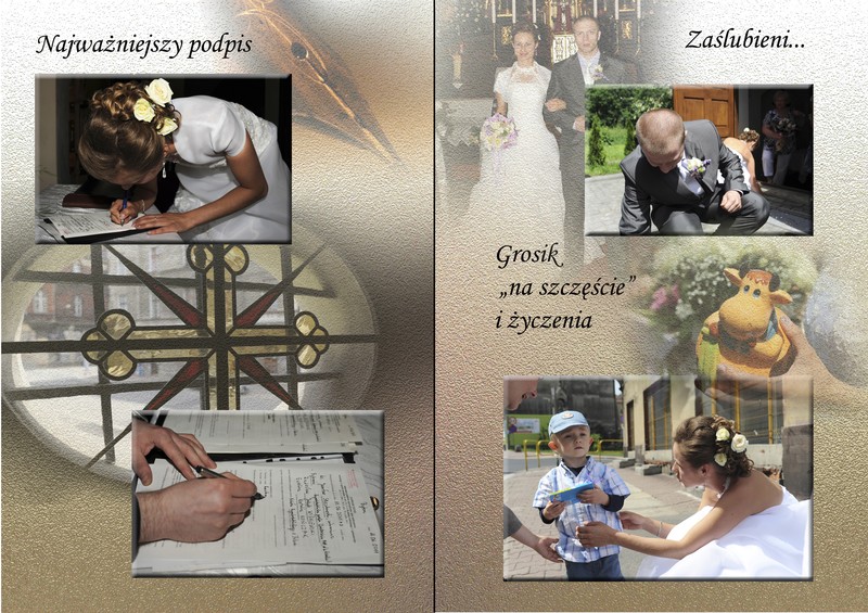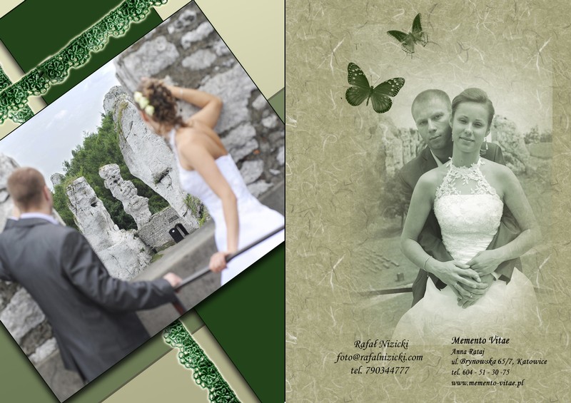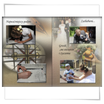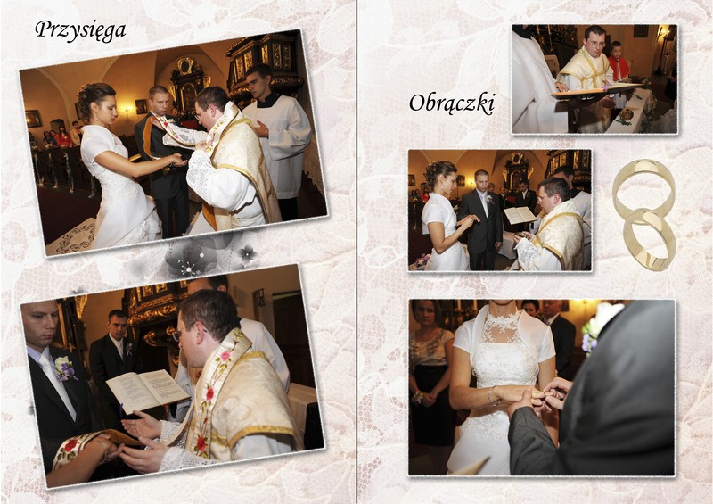 Duże znaczenie dla mnie ma efekt końcowy prac, gdyż cenię sobie m.in trud włożony przez Was w czasie pleneru ślubnego. Dlatego dobre zdjęcia wymagają dobrej oprawy. Album ślubny to forma prezentacji mojego dzieła i nie wchodzi w rachubę oddanie zdjęć w kopercie. Mam do zaoferowanie trzy rodzaje albumów: album tradycyjny z wklejanymi odbitkami na strony przekładane pergaminem, fotoalbum w postaci księgi w której zdjęcia rozmieszczone są wg autorskiego projektu, bądź hybrydę albumu tradycyjnego z fotoalbumem, gdzie w tradycyjne grube karty wklejane są wydrukowane zestawienia fotografii. Wszystko to jest wykonywane przez profesjonalny zakład introligatorski, co jest gwarantem wysokiej jakości i trwałości. Ponadto dostaniecie płytę ze zdjęciami w pełnym formacie, wglądówkami.